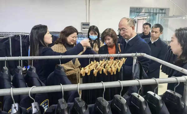 2月28日上午,省市場監(jiān)督管理局財(cái)務(wù)處處長劉忠率隊(duì)到國錦湘安公司調(diào)研市場監(jiān)督制式服裝生產(chǎn)推進(jìn)工作情況。國錦湘安公司黨總支書記、董事長鄭曉芳陪同調(diào)研。