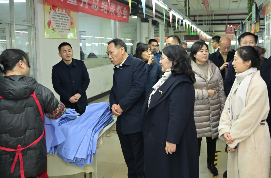 劉湘奇一行深入一線,先后來到湘安實業(yè)服裝展廳、營業(yè)樓辦公區(qū)域、生產(chǎn)車間、成品倉庫等地,與員工親切交流交談,詳細(xì)了解企業(yè)經(jīng)營業(yè)態(tài)、隊伍建設(shè)、員工辦公生活環(huán)境、車間生產(chǎn)作業(yè)、中長期戰(zhàn)略規(guī)劃、數(shù)字化園區(qū)建設(shè)等主要情況。