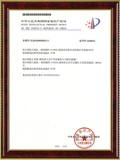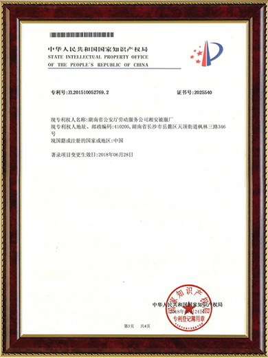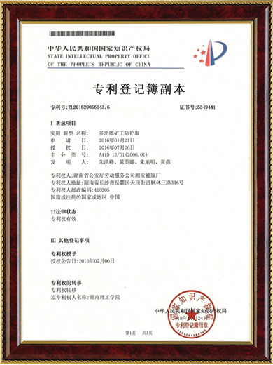 《多功能曠工防護(hù)服》實(shí)用新型專利證書 |
