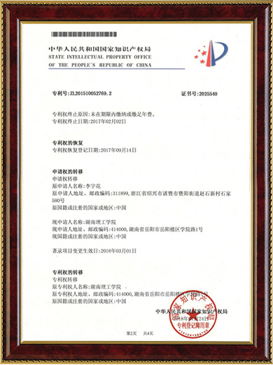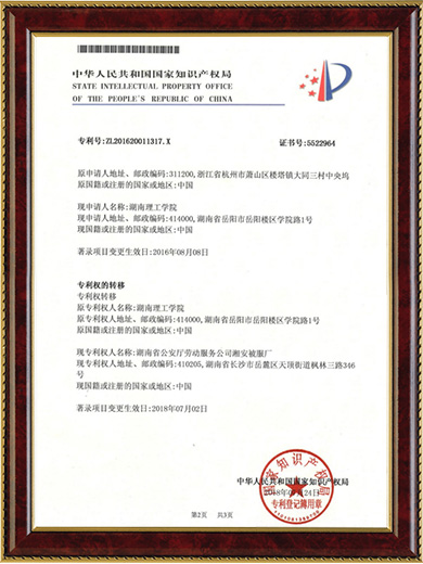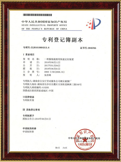 《一種服裝裁剪用快速定位裝置》發(fā)明專利證書
